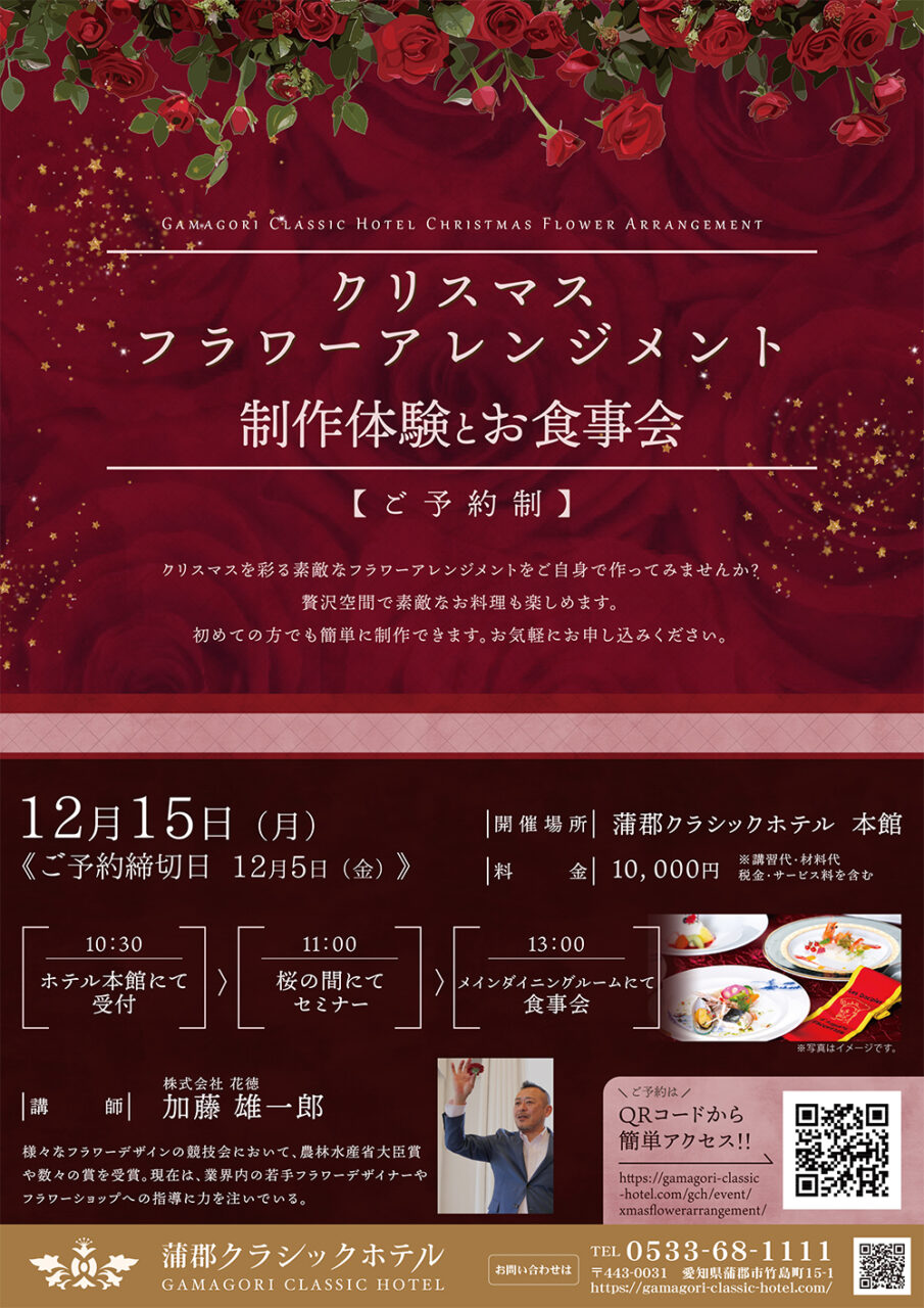 クリスマスフラワーアレンジメント制作体験とお食事会