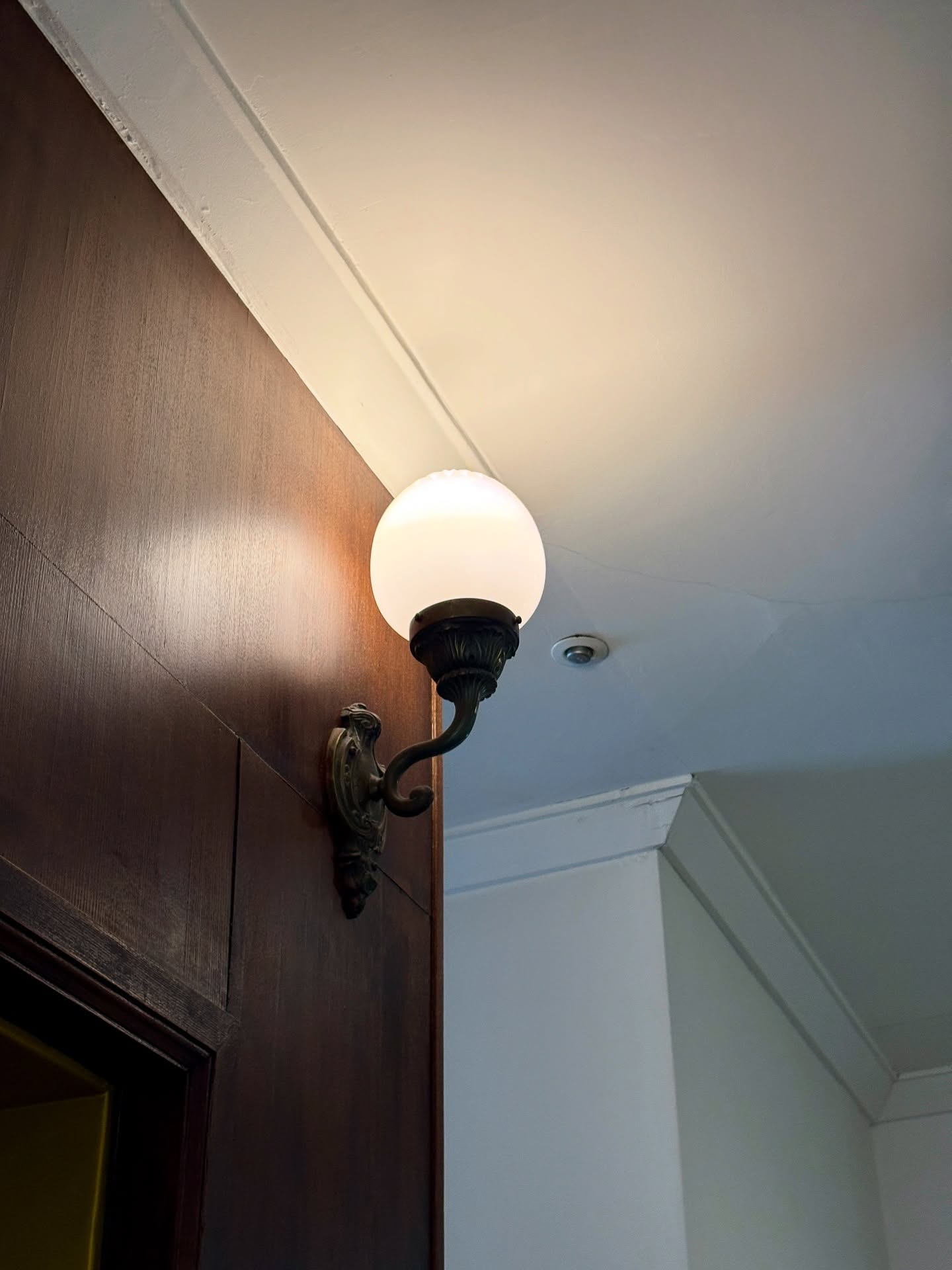 ロビー(玄関寄り)の窪みスペースと桜の間付近にある照明。
